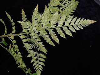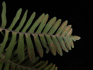 Observe modified fertile pinnae at the end of the frond rachis (=leaf axis)